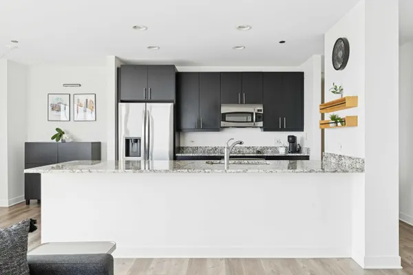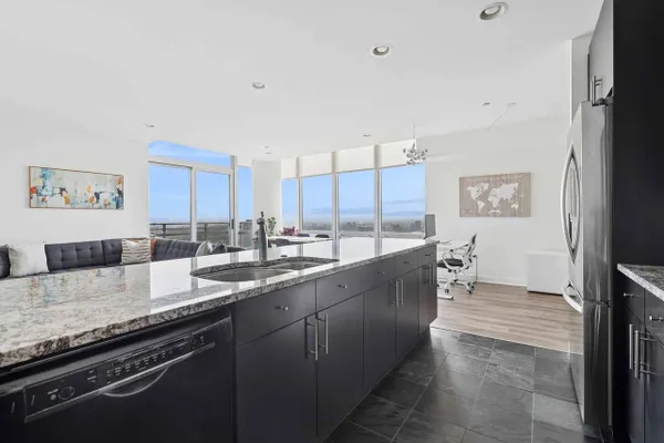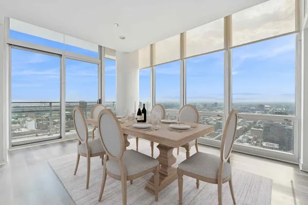 ONE OF THE LARGEST UNITS in the building with PANORAMIC VIEWS FROM EVERY ROOM in the West Loop! This stunning, sun-drenched 2 BED / 2 BATH residence features hardwood floors throughout, an expansive open-concept kitchen, living, and dining layout framed by FLOOR-TO-CEILING WINDOWS with Southwest BREATHTAKING SKYLINE VIEWS and A PRIVATE OUTDOOR SPACE. The upgraded chef's kitchen boasts an impressive EXPANSIVE ISLAND, stainless steel appliances, and abundant storage. Bonus area for an office/pantry/built-in bar (as virtually staged in the photos). The ENORMOUS primary suite includes an OVERSIZED professionally organized walk-in closet, while the luxurious primary bathroom offers dual vanity, oversized walk-in shower, separate soaking tub, beautiful finishes, and exceptional storage. An additional incredibly large sized bedroom, full modern bathroom, and GRAND LAUNDRY ROOM with extra storage complete this extraordinary layout. Full-amenity building includes 24-hour door staff, onsite manager, rooftop terrace, state-of-the-art fitness center, party room, dog run, and convenient UNDERGROUND access to Whole Foods! PRIME West Loop location just steps from the Loop, Greektown, Mary Bartelme Park, Restaurant Row, vibrant Fulton Market dining and nightlife, boutiques, coffee shops, fitness studios, Whole Foods, Mariano's, the EL, and 90/94 access. SKINNER SCHOOL DISTRICT! GARAGE PARKING SPACE AVAILABLE FOR $30K.