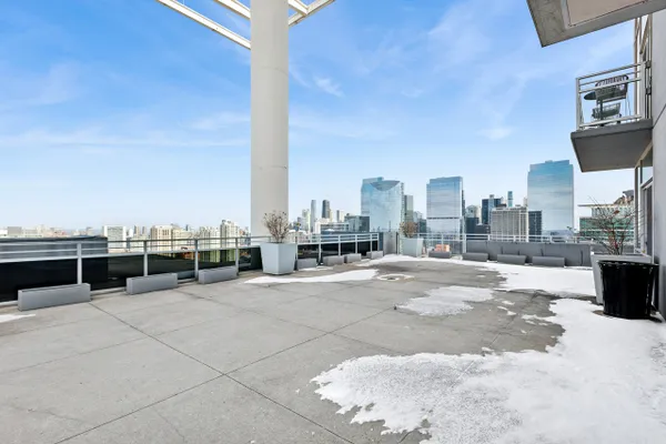 This stylish, one of a kind 2 bed/2.1 bath duplex up is located in West Loop's desirable Skybridge building. Enjoy stunning, unobstructed east-facing city views from your private balcony, living room and bedroom. Ideal open concept layout makes entertaining easy in your extra wide living-dining space. Highlighted in the living room is a corner, gas fireplace that is clean burning with remote control and exposed concrete ceiling and column (used to be popcorn ceiling). The kitchen will inspire your inner chef clad with granite countertops, expansive island, and top grade stainless steel appliances. Both bedrooms located on the 2nd floor. The primary bedroom is your own private oasis featuring an abundance of closet space, 1 walk in and 2nd full closet plus a soundproof window. The ensuite spa like bath with double sink and shower/whirlpool tub, freshly painted. Second bedroom can be used as guest room or home office. Second full bathroom, rainfall shower head, walk in shower. Private East facing balcony with wood patio tile. Dimming switches in most rooms and great storage closet as you walk in the front door. 2026: New vinyl plank flooring on the first floor, new toilet in powder bathroom, some new painting, carpets cleaned, professionally cleaned. Other unit highlights include in-unit washer/dryer & storage locker. Pet-friendly building with great amenities including 24/7 doorman, fitness center, 36th floor-rooftop with grills and panoramic skyline views, Luxer package system, dog run. Assessment includes cable, internet, heat, and A/C. Building connected to Whole Foods, walk to Loop, access to 90-94 expressway, 20 Madison bus stops in front of building, Ogilvie train station, short walk to Randolph restaurant row, Mariano's, gyms, and everything else the West Loop has to offer! Deeded garage parking is available for 30K.