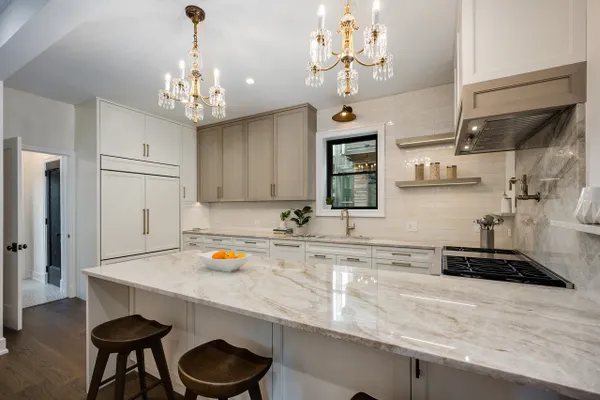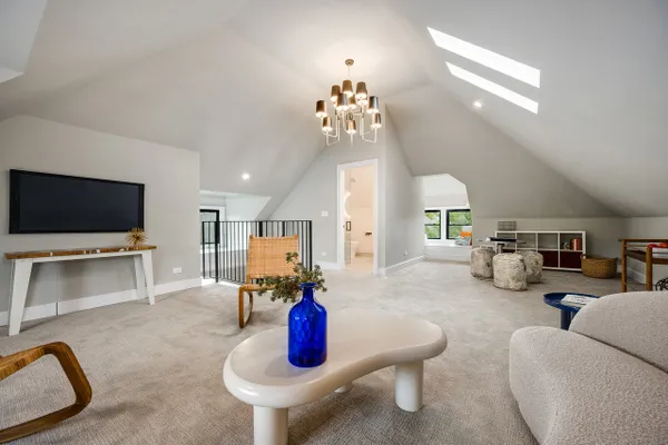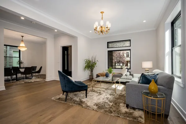 Nestled on an expansive 50 x 125 double lot, this exquisitely restored and professionally designed by Daniela Guini Interior Design, American Four-Square residence offers over 5,000 square feet of sophisticated living across four impeccably finished levels. With 5 bedrooms and 4.1 bathrooms, the home masterfully blends timeless architectural charm with the comforts of contemporary living. From the moment you step inside, you're welcomed by historic character-restored original chandeliers, a classic built-in entry hutch, and stunning stained-glass windows. The main level is graced with soaring ceilings, custom millwork, and rich hardwood floors, flowing seamlessly through multiple living and dining areas. At the heart of the home lies a sun-drenched, entertainer's kitchen featuring a premium Wolf/Sub-Zero appliance suite, bespoke cabinetry, and luxurious Taj Mahal quartzite countertops. Just beyond, a full-size custom pantry, mudroom, and coat closet offer both convenience and style. The second floor hosts four spacious bedrooms, all thoughtfully positioned on the same level, along with a well-appointed guest bath boasting a double vanity, soaking tub, and separate walk-in shower. The primary suite is a serene retreat, complete with custom built-ins, a generous walk-in closet, and a spa-inspired bath featuring heated floors, dual vanities, and a dramatic wet room with soaking tub and expansive glass-enclosed shower. The finished attic level, bathed in natural light from skylights and equipped with its own full bath, offers flexible space ideal for a guest suite, home office, or creative studio. The fully dug-out lower level enhances functionality with an additional bedroom and full bath, a large recreation area, utility room, and a charming wine cellar. Step outside to enjoy the oversized backyard-perfect for entertaining, gardening, or peaceful relaxation. A stately brick 3-car garage completes this exceptional offering. Located in the historic enclave once known as Kimball Farms, this distinguished Logan Square home is just three blocks from the Blue Line, Logan Theatre, acclaimed restaurants, the vibrant farmers market, and more. This is a rare opportunity to own a piece of architectural history-reimagined with intention, crafted with care, and ready to welcome its next chapter.
