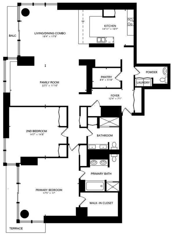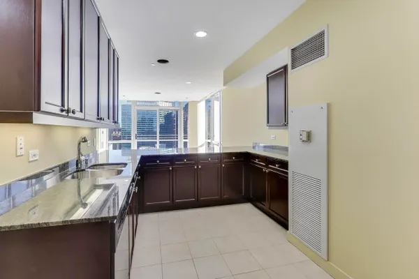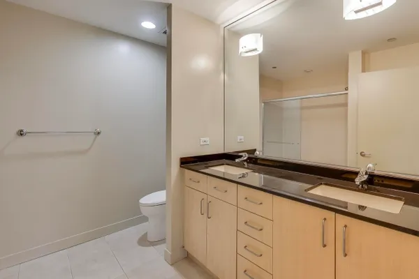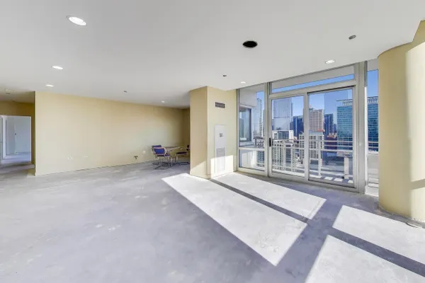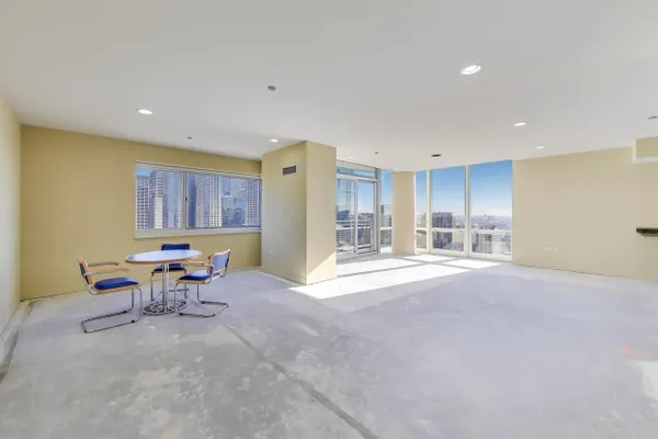 Soak in breathtaking east-facing skyline views from this bright and spacious 2 bed / 2.1 bath plus family room West Loop condo, perfectly positioned in a full-amenity elevator building. 2300+ SF unit provides floor-to-ceiling windows which flood the space with natural light and frame postcard-worthy city views from nearly every room. The open layout offers flexible living and dining options plus a bonus family room, ideal for entertaining or everyday living. Step outside to your private east-facing balcony off the living area, the perfect spot to sip your morning coffee or sunset cocktails. The spacious, open kitchen features abundant cherry cabinetry with excellent storage and granite countertops with an oversized breakfast bar. A massive walk-in pantry could also easily convert to a home office. The primary suite is a true retreat, featuring a wraparound terrace with both east and north exposures, generous walk-in closet, and ensuite bath with jetted tub, separate shower and double vanity. The concrete subfloors are ready for your finishing touch, allowing you to customize with hardwood, tile, or carpet. Side-by-side in-unit washer/dryer adds to your easy living. Building amenities include a rooftop deck, fitness center, party room, bike room, dog run, package receiving, dry-cleaner drop-off, on-site management, 24-hour door staff and a direct connect to Whole Foods. Two deeded side-by-side garage parking spaces included in price! All of these modern conveniences included in an unbeatable location just steps to Ogilvie, easy to public trans and highway, and a short stroll to the best dining, nightlife, and culture the West Loop and Fulton Market has to offer.